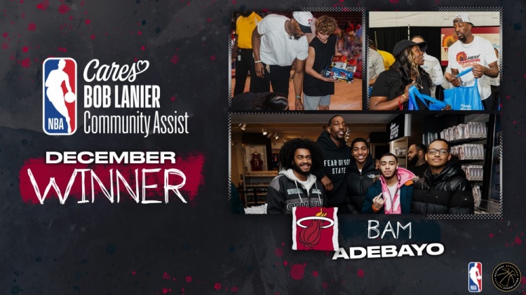 欧冠球队排名-官方:热火中锋阿德巴约获得十二月份鲍勃·兰尼尔社区关怀奖