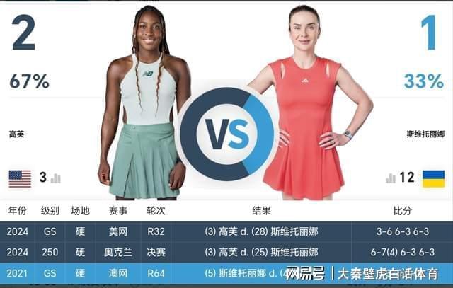 本场比赛,与高芙隔网而立的是12号种子、乌克兰名将斯维托丽娜。